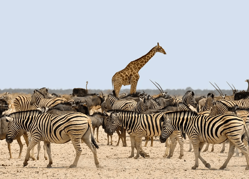 :辟有11个天然动物园,北部的塞伦盖蒂国家公园面积14000平方公里,聚集数百万头野生动物,动物种类170种以上。每年干季和雨季,以角马、斑马为主体的庞大兽群大迁徙,场面极为壮观。