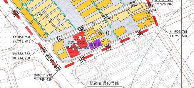 项目南界武进路,东临罗浮路,西接宝山路及河南北路,北靠04-03、04-04地块(根据网传信息,这两个地块会规划高层住宅)。北地块的设计继承传统的“总弄-支弄”鱼骨状里弄空间结构,布置4条南北向的主要弄巷和1条东西向的主要弄巷。南地块内则规划有1条南北向的主要弄巷,同时,该地块内包含虞洽卿寓所旧址以及文物保护点——同乐里。