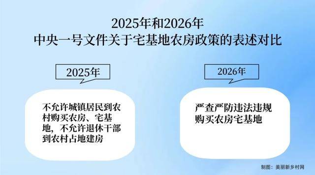 2026年中央一号文件明确指出:“强化农村宅基地和农民建房审批管理,严查严防违法违规购买农房宅基地。” 这一刀切下去,彻底断了城镇居民下乡购买宅基地的后路。
