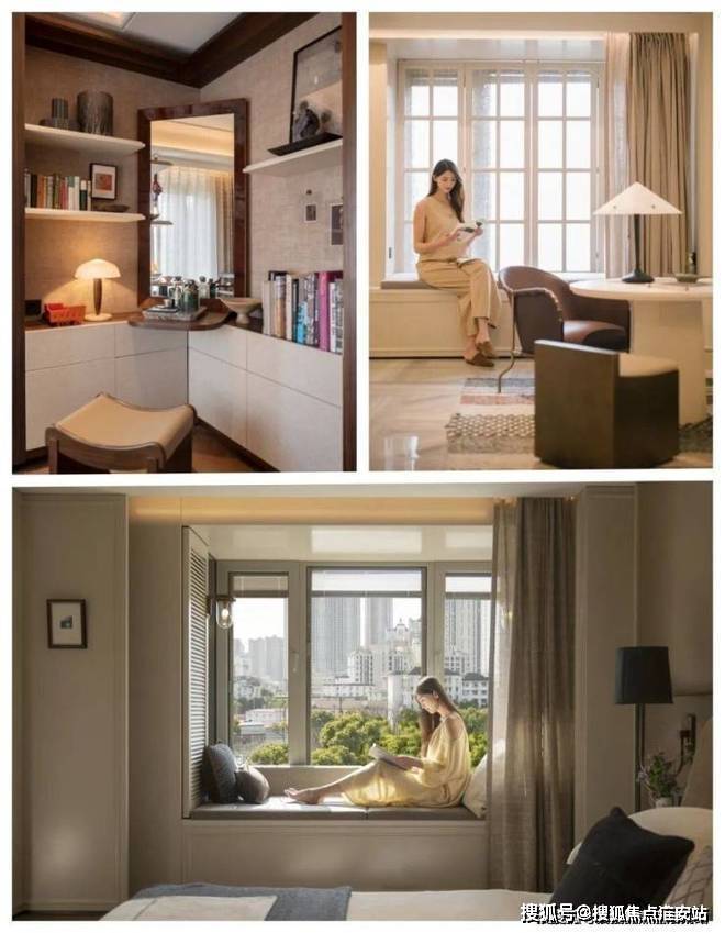 南次卧可以作为卧室,也可以像样板房这样,与主卧打通做成一个套间书房+专属梳妆台,也可以作为独立的卧室使用。